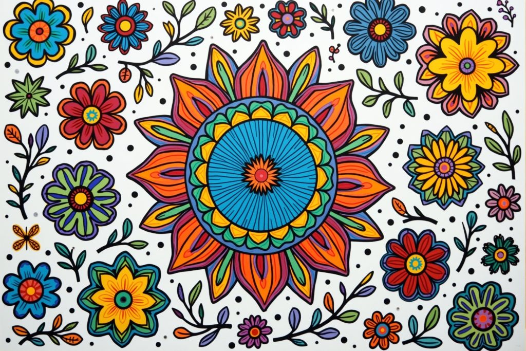 - Blumenmandalas: Zarte Blumenmuster, die zum Träumen einladen und die Schönheit der Natur widerspiegeln. Diese Mandalas sind besonders beliebt bei Mädchen und jungen Frauen.