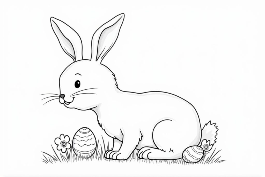 - Einfache Osterhasen und Ostereier: Große Flächen und klare Linien erleichtern das Ausmalen für kleine Kinderhände.