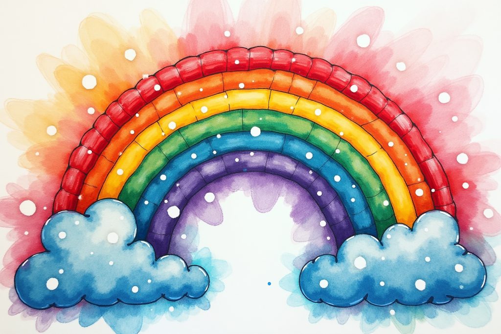 - Glitzer: Verwende Glitzerstifte oder -kleber, um den Regenbogen zum Funkeln zu bringen.